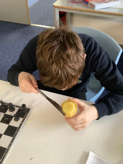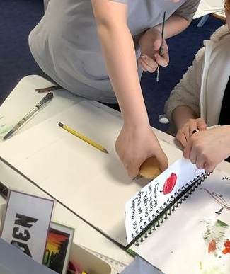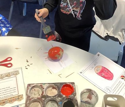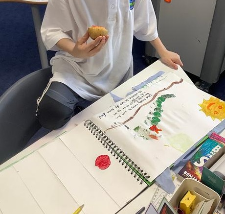 Oak created book characters out of potatoes and used potato printing to create their own Very Hungry Caterpillar book.